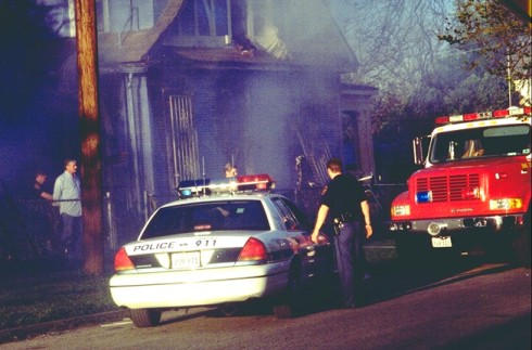 positioning police cars and the fire truck and testing the smoke